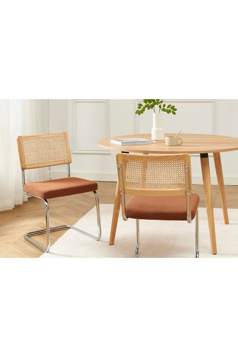 Dossier en bois d'hévéa massif et cannage circulaire.