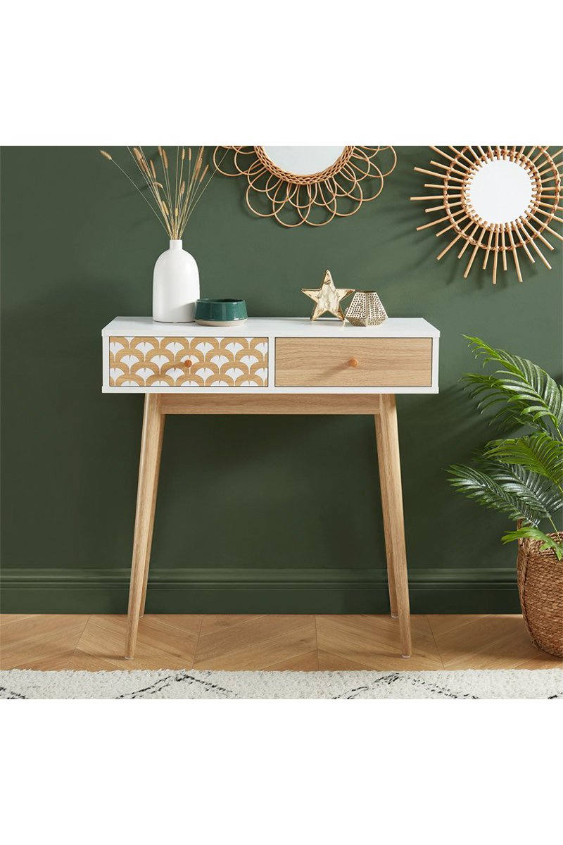 Console 2 tiroirs Utah - Blanc et imitation bois