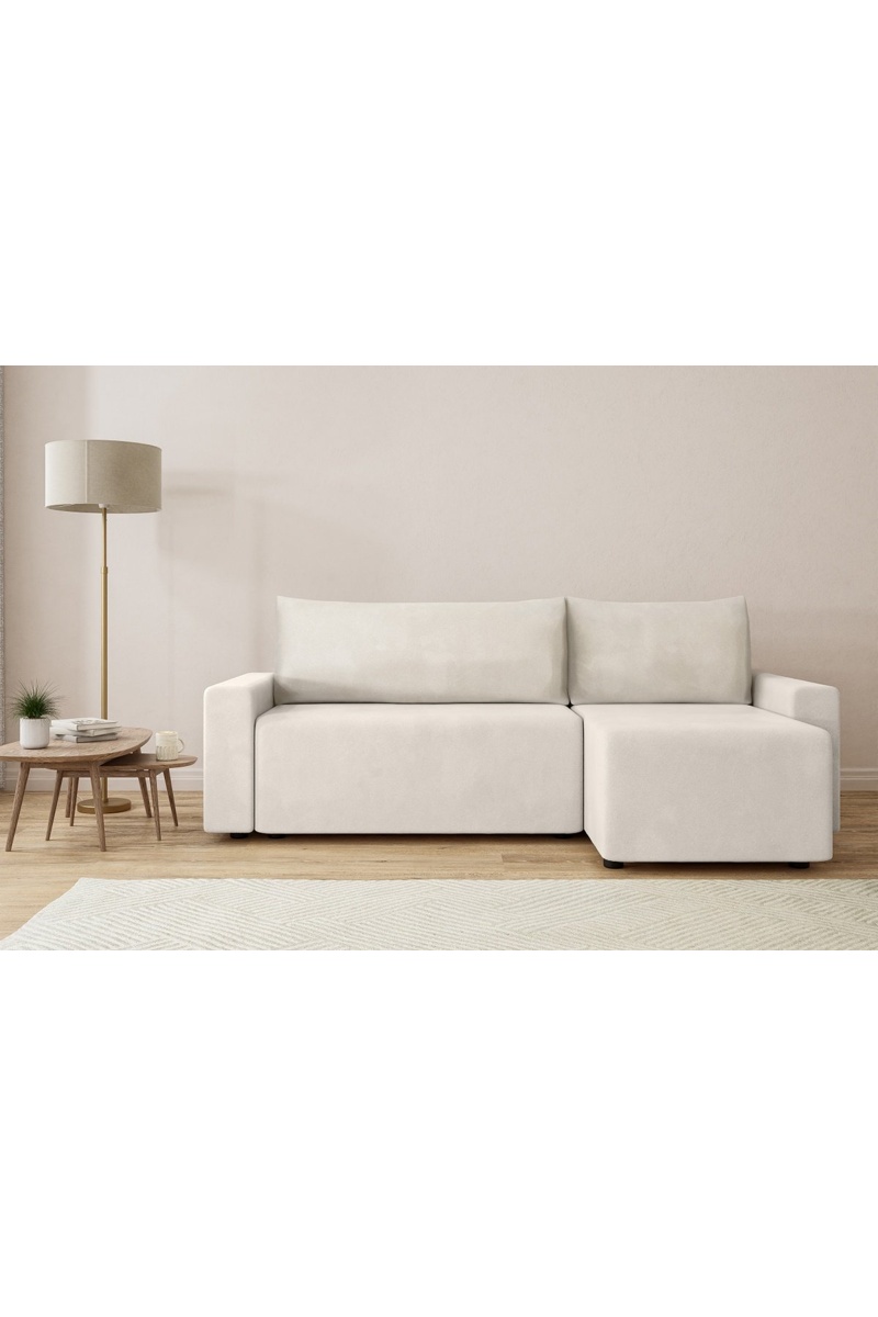 Canapé d'angle réversible convertible Teo - Beige - 4 places - En tissu velours côtelé