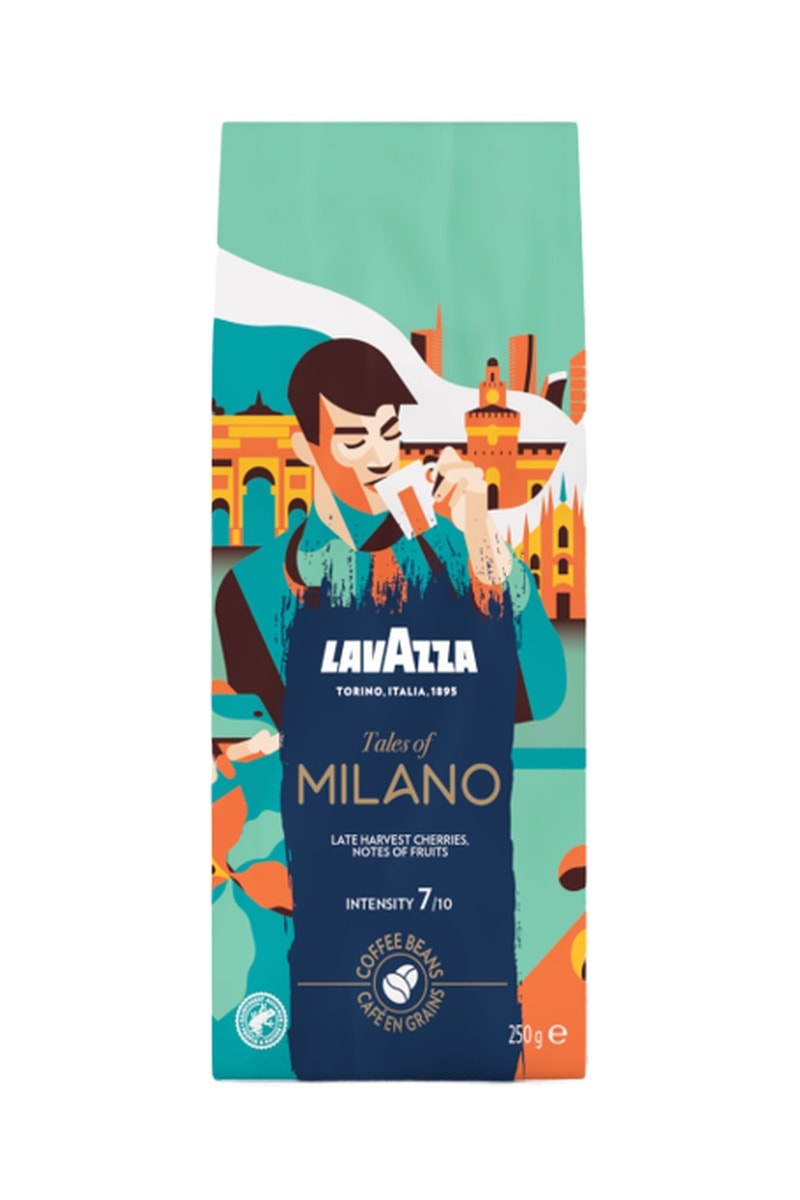 Café en grains tales of milano lavazza. Goût fruits rouges et miel.