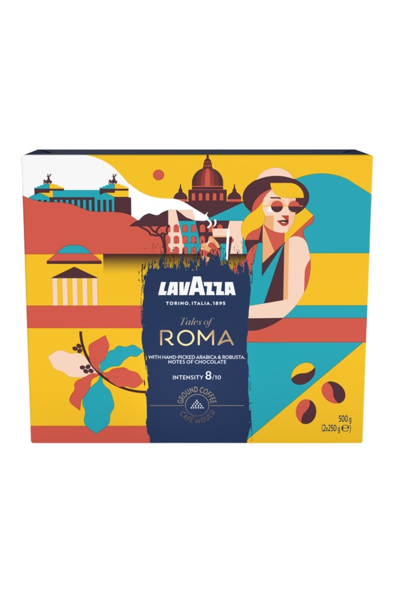 2 paquets de café moulu lavazza tales of italy roma. Goût intense et gourmand, chocolat noir et noisettes.