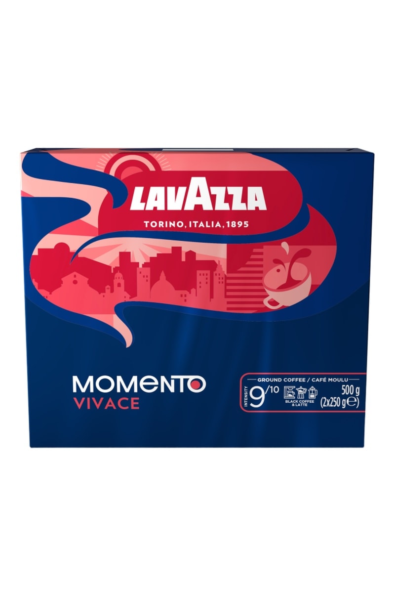 Café moulu Lavazza Momento VivaceSavourez un café au goût riche et équilibré, idéal pour une pause gourmande à tout moment de la journée.