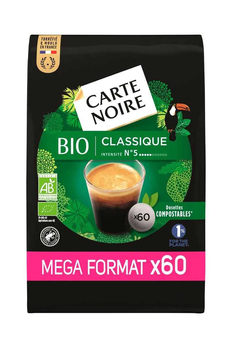 Café classique bio - 60 dosettes compostables pour machine à dosettes souples