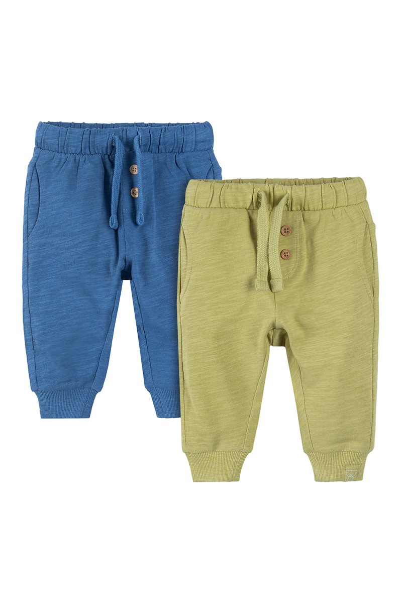 2 pantalons - Vert olive chiné et bleu cobalt chiné