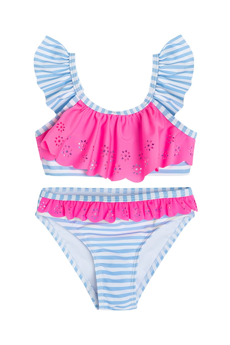 Maillot 2 pièces à motifs à rayures comprenant :