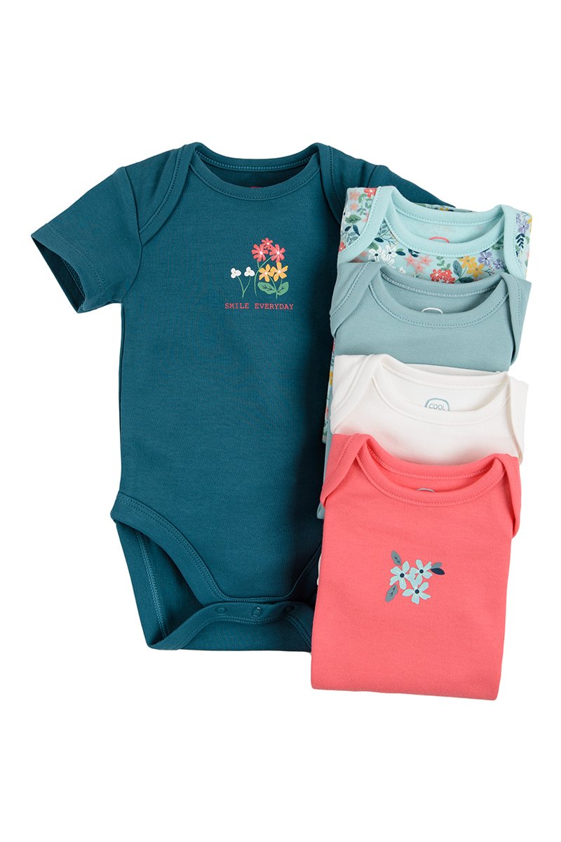 5 bodys - Bleu pétrole, rouge et blanc