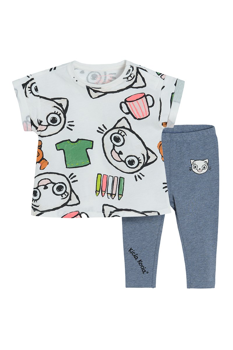 T-shirt et legging Kicia Kocia - Blanc et bleu marine chiné