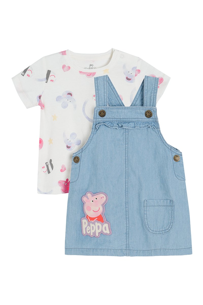 T-shirt et robe-salopette en jean Peppa Pig - Blanc et bleu marine