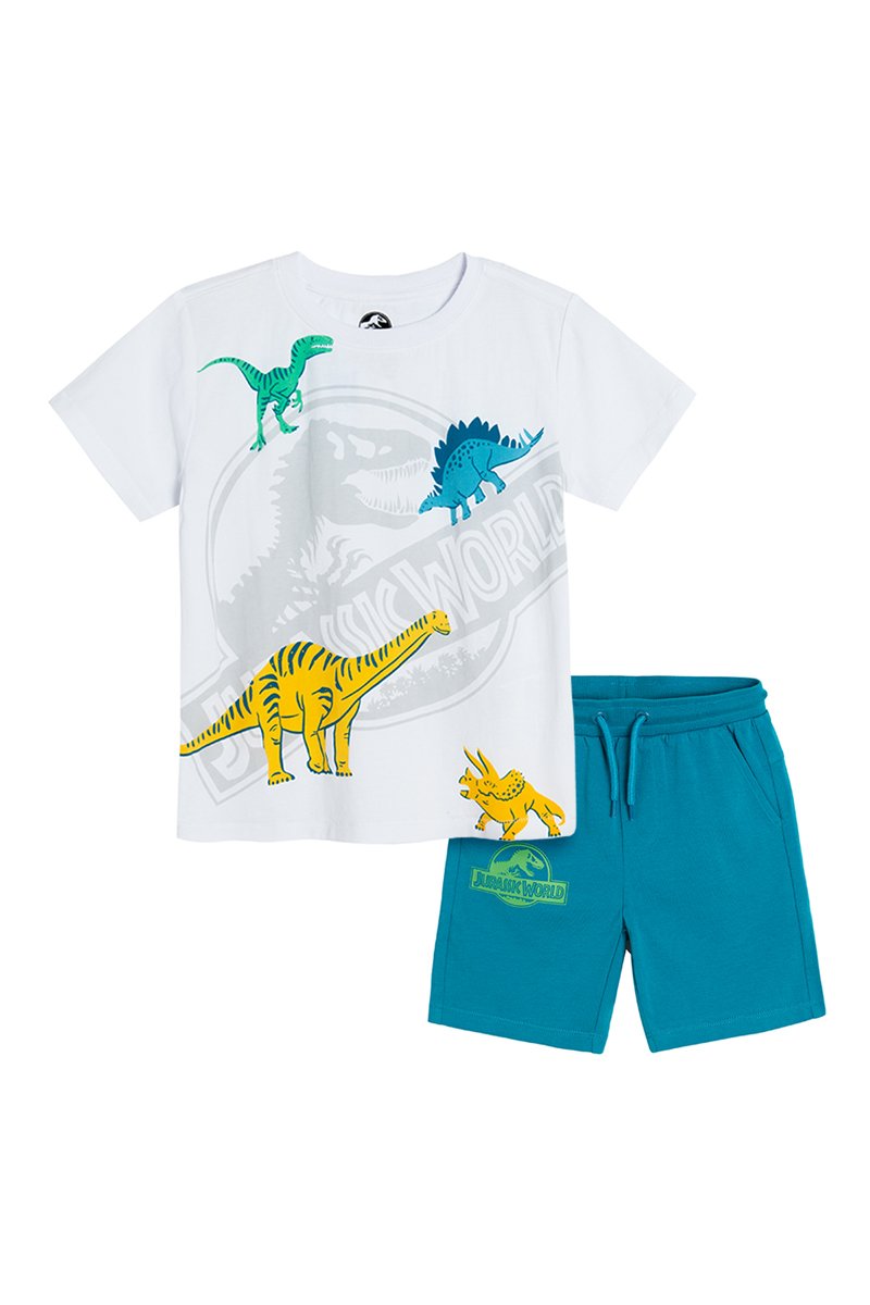 T-shirt et short Jurassic World - Blanc et bleu canard