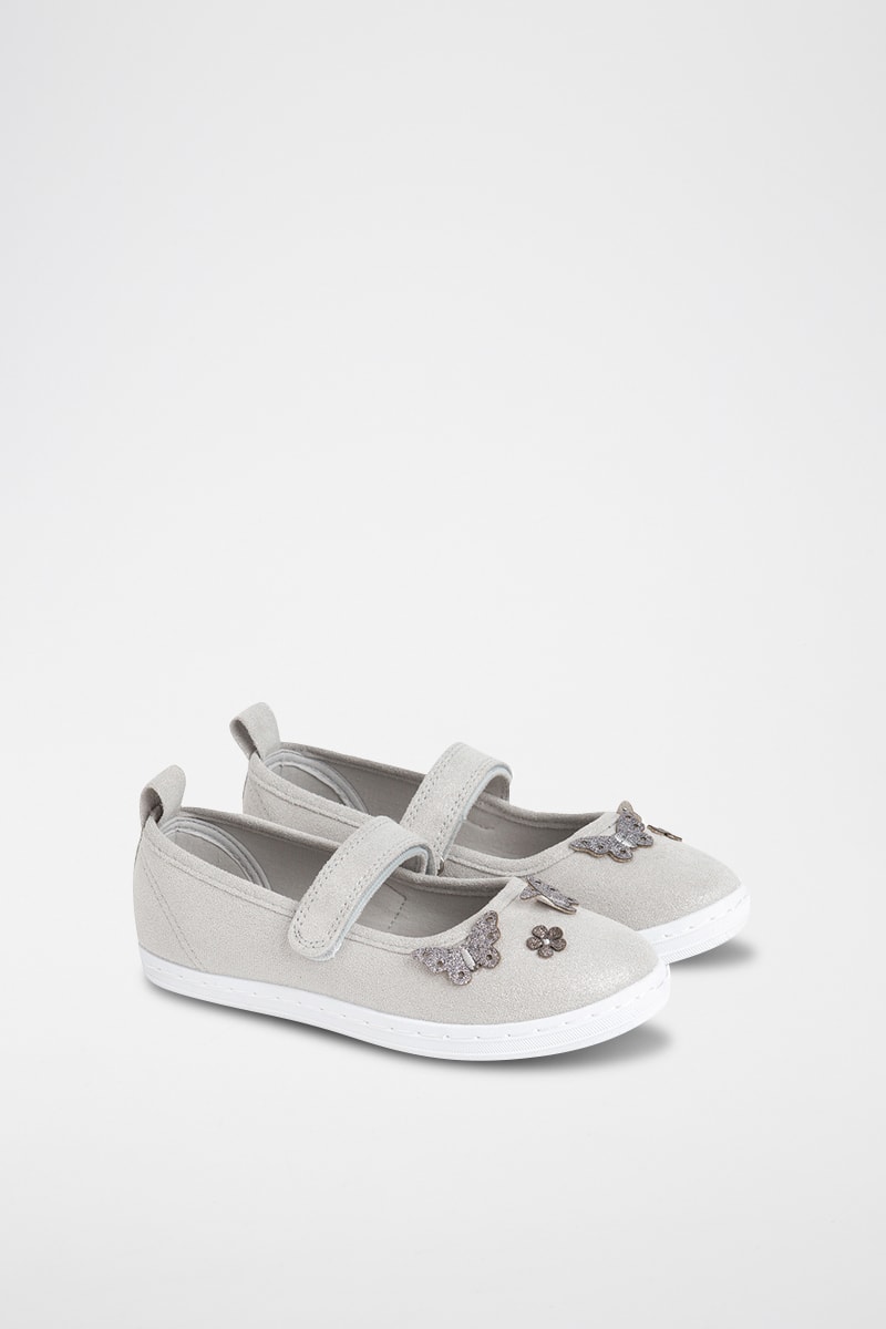 Empiècements pailletés forme papillon et empiècement pailleté forme fleur devant.