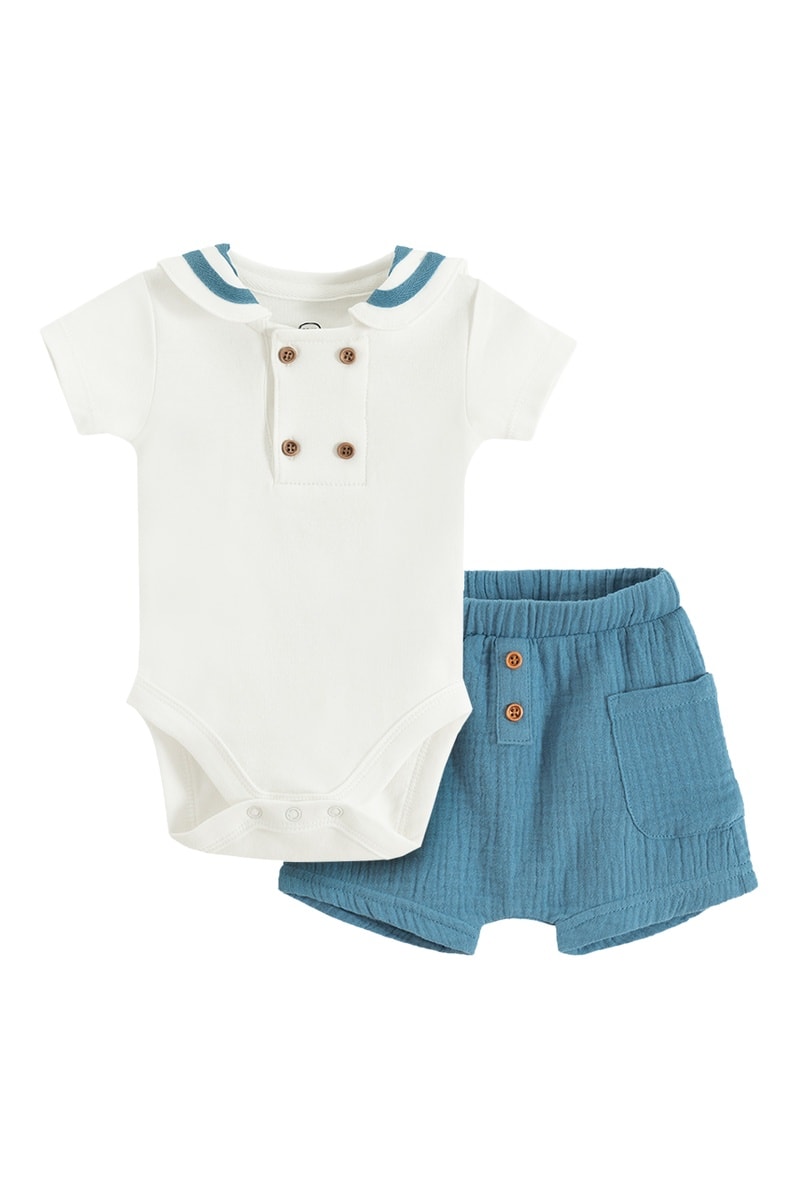 Fermeture boutonnée devant et pressionnée à l’entrejambe.