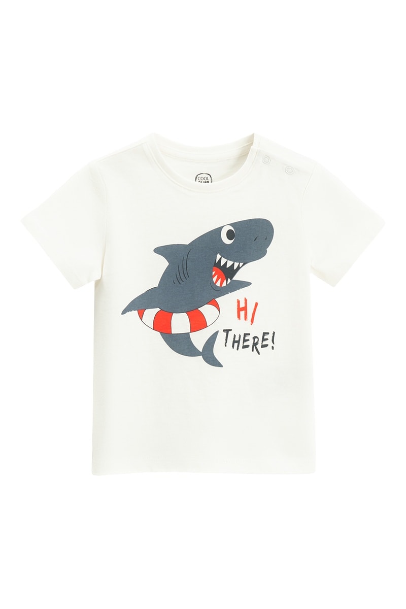 Lettrage et motif requin devant.