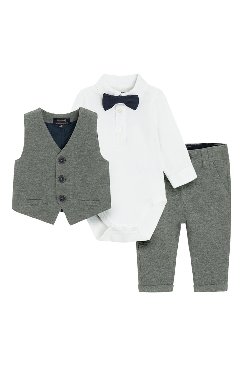 Ensemble 3 pièces - Blanc et gris foncé chiné