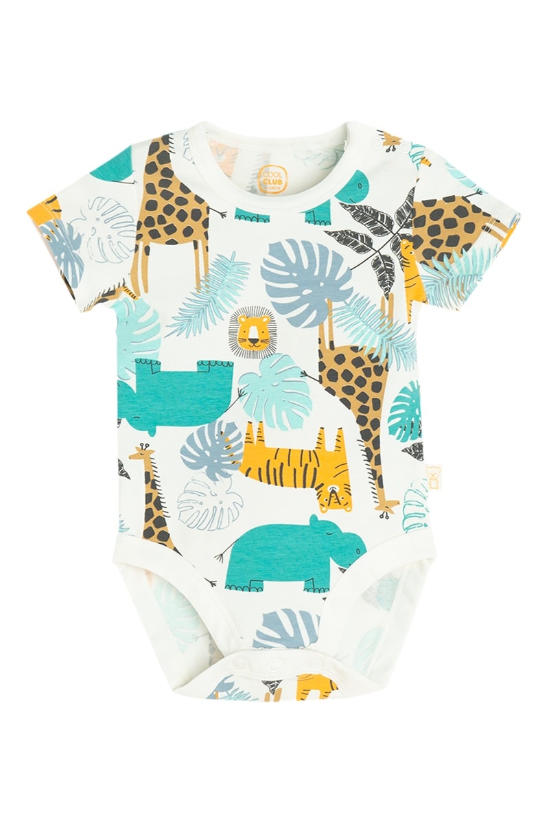 Fermeture pressionnée à l’épaule gauche et l’entrejambe.