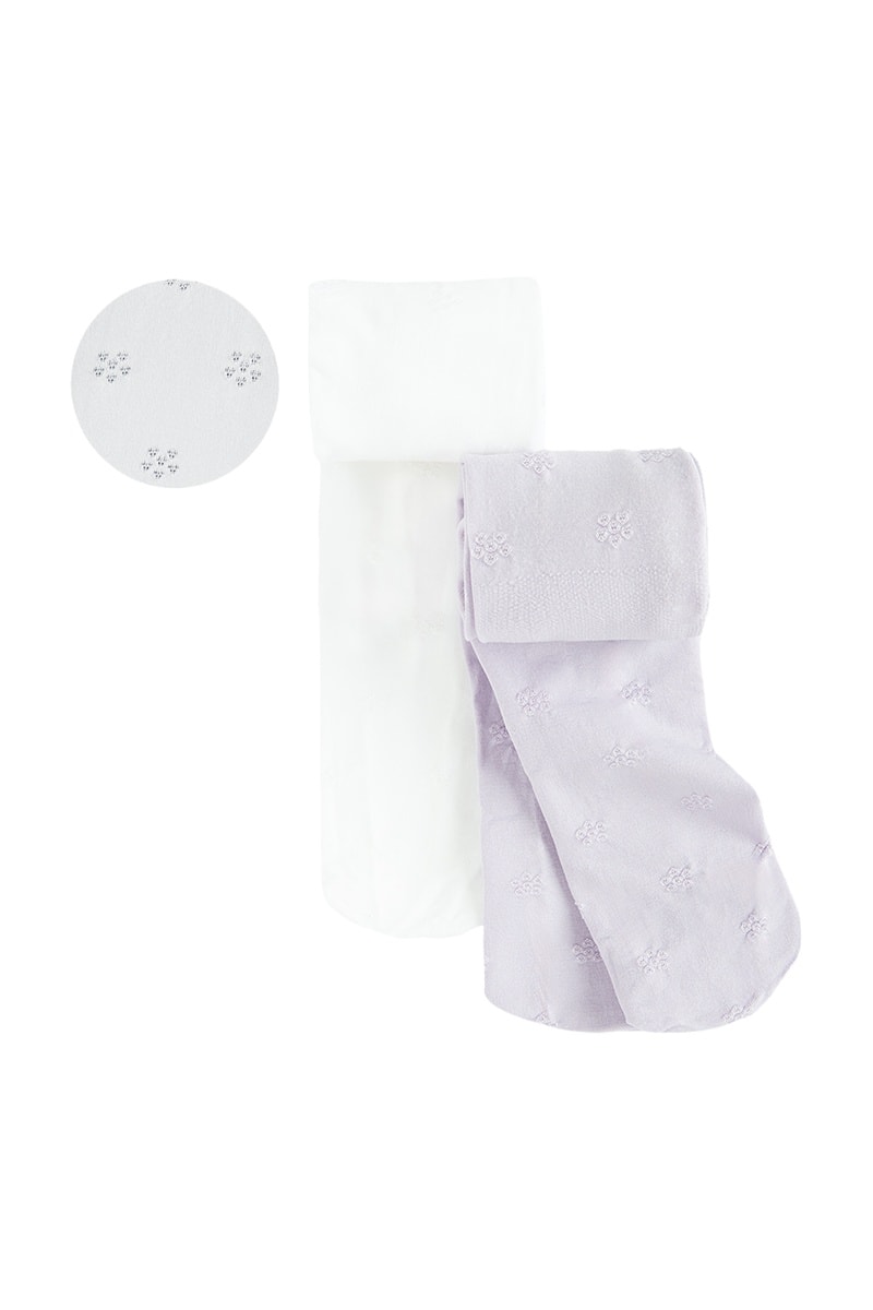 2 paires de collants - 60 deniers - Blanc et mauve