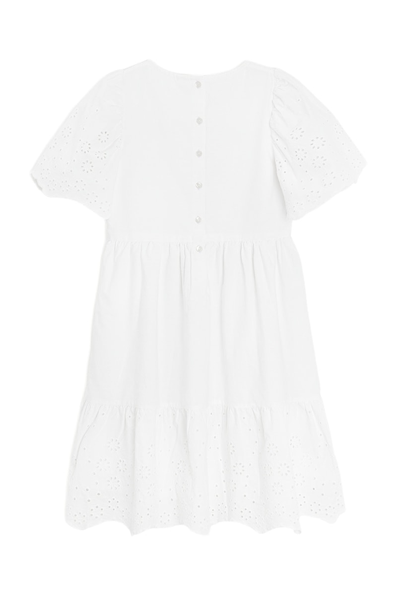 Broderie anglaise sur les manches et sur la jupe.