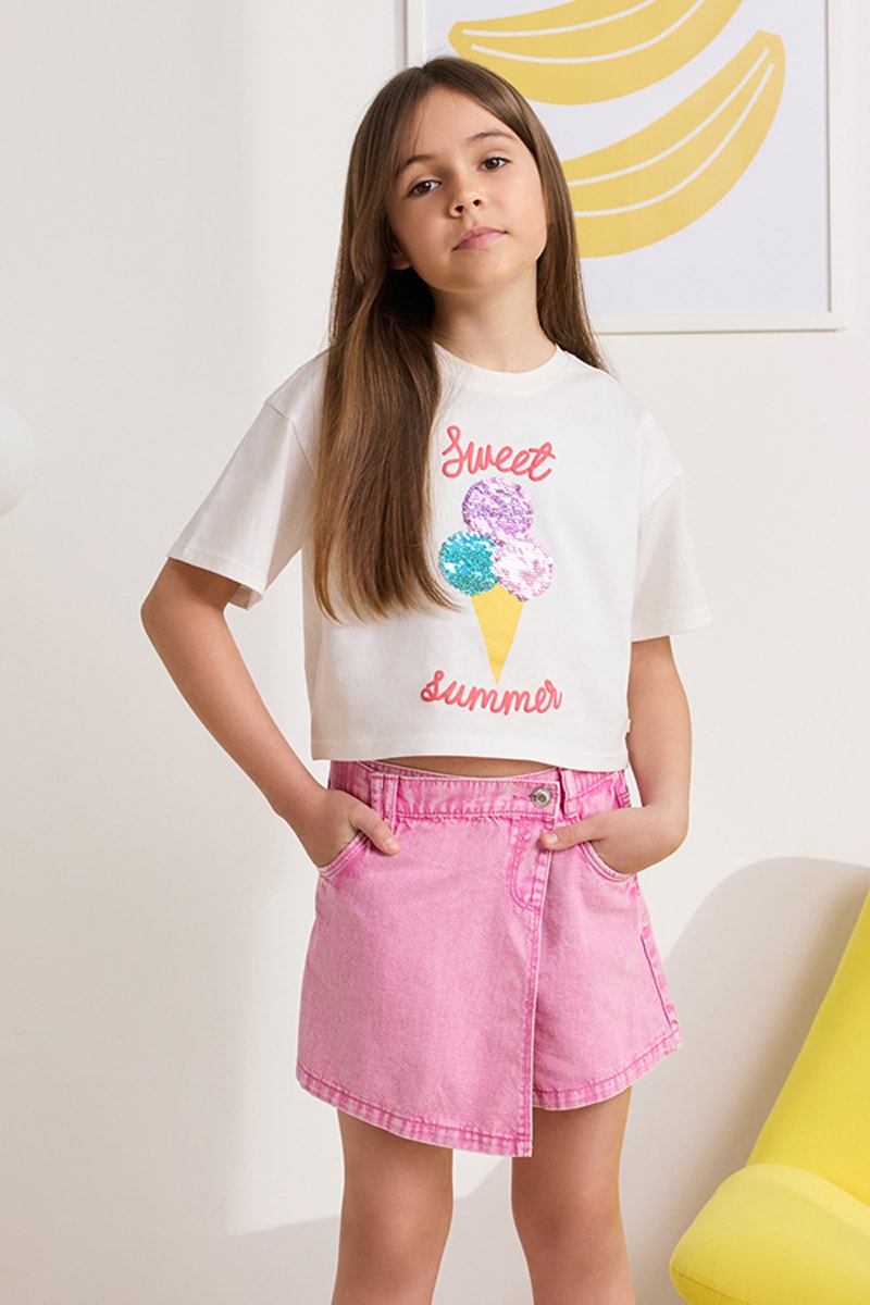 Jupe-short en jean - Rose
