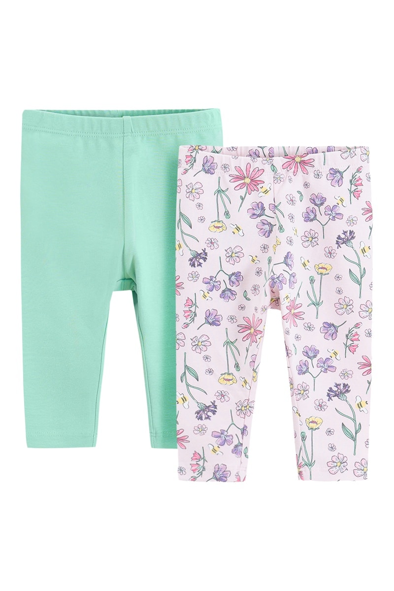 2 leggings dont 1 à motifs fleurs.