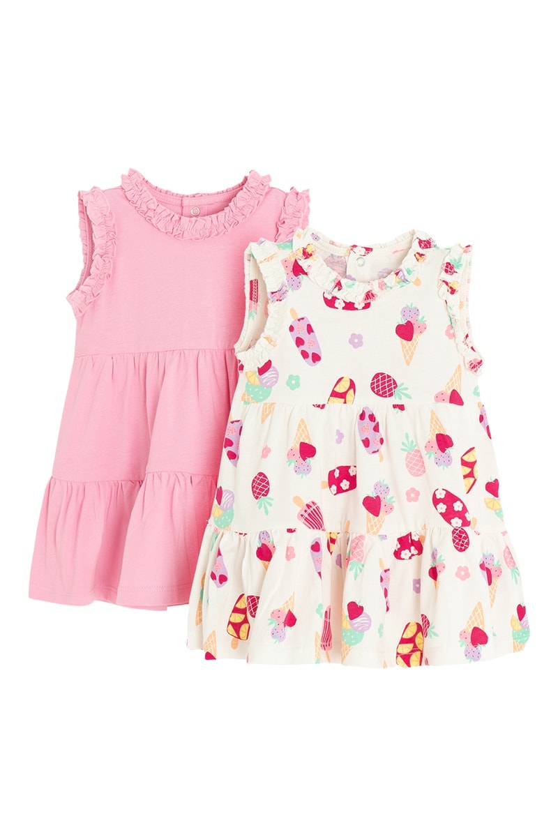 2 robes dont 1 à motifs fantaisie.