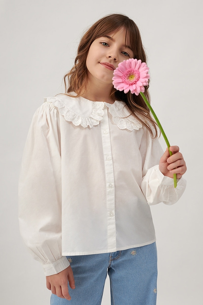 Col Claudine avec empiècement à motifs fantaisie brodés.