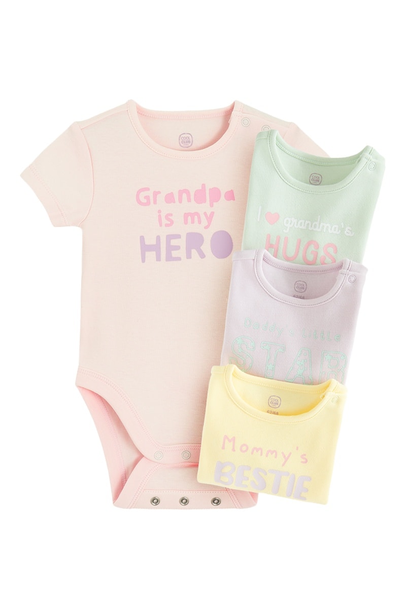 4 bodys - Jaune, vert et rose