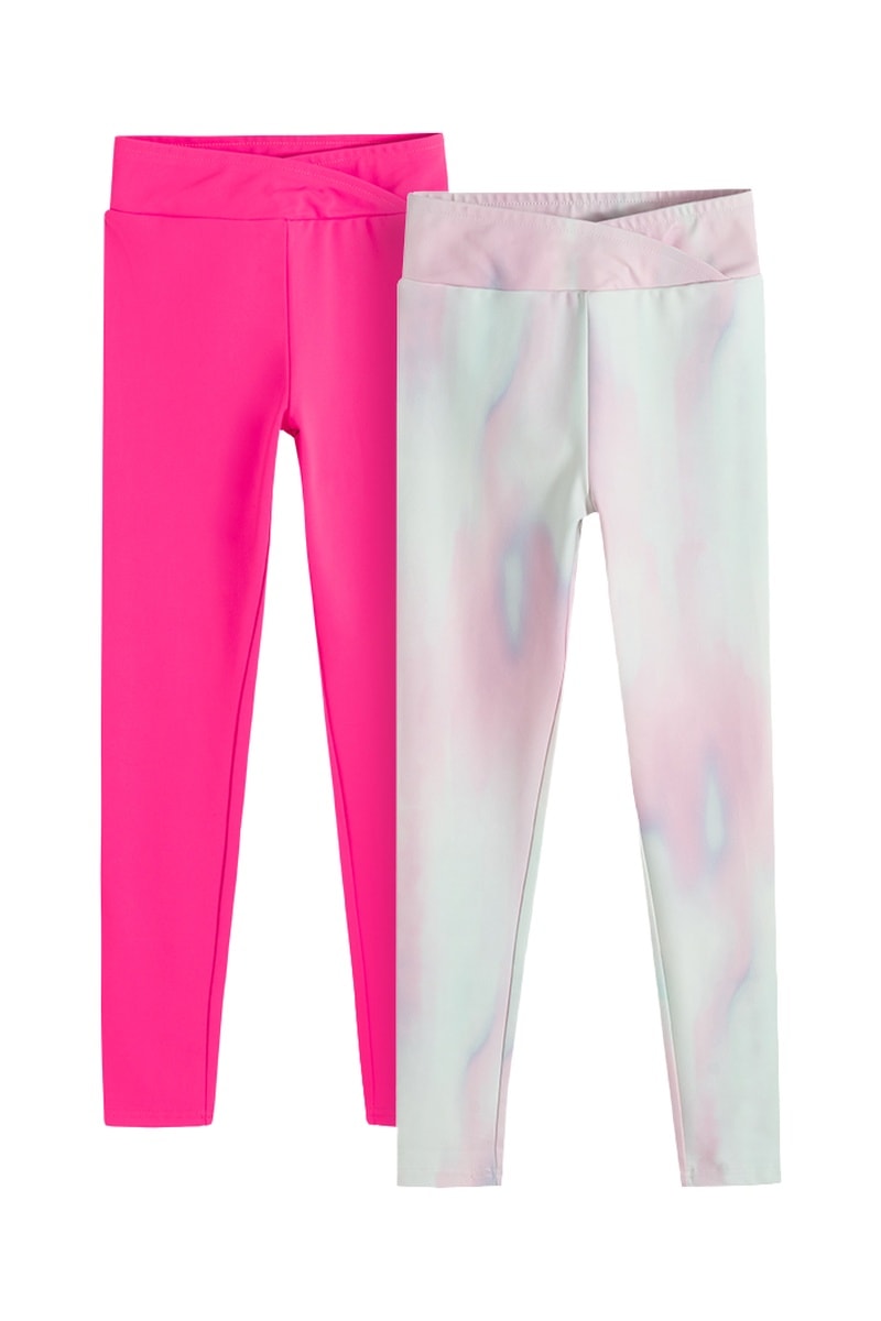 2 leggings - Fuchsia et vert d'eau