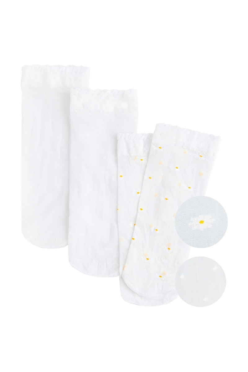 3 collants dont 1 à motifs à pois et 1 à motifs fleurs.