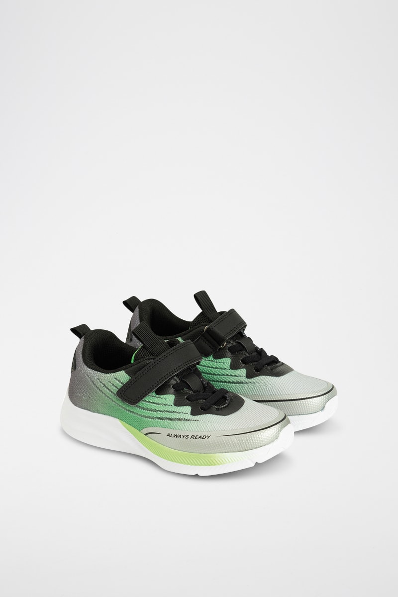 Fermeture à lacets et par scratch.