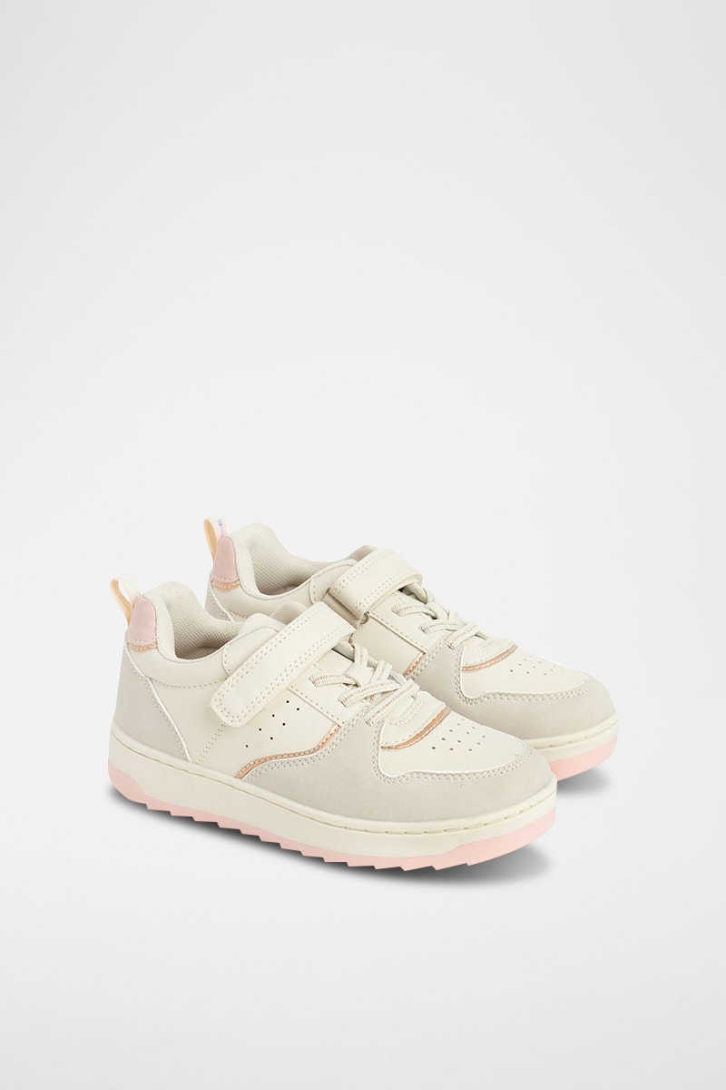Fermeture à lacets et par scratch.
