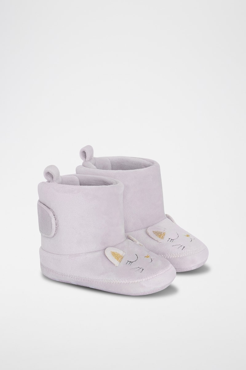 Motifs fantaisie brodés et empiècements forme oreille devant.