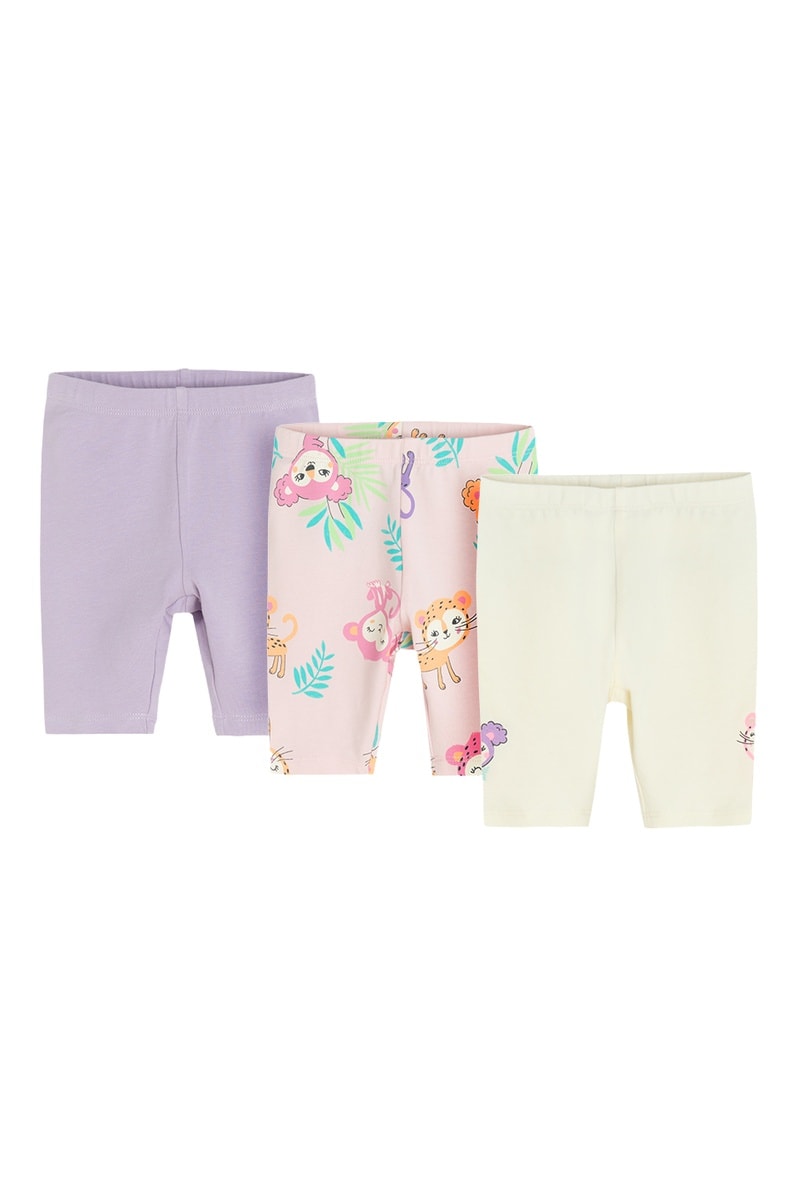 3 leggings dont 1 à motifs fantaisie et 1 à motifs fantaisie sur les côtés.