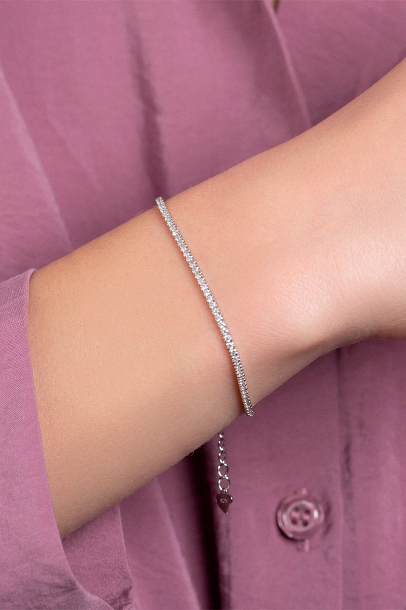 Bracelet en argent serti de zirconiums.