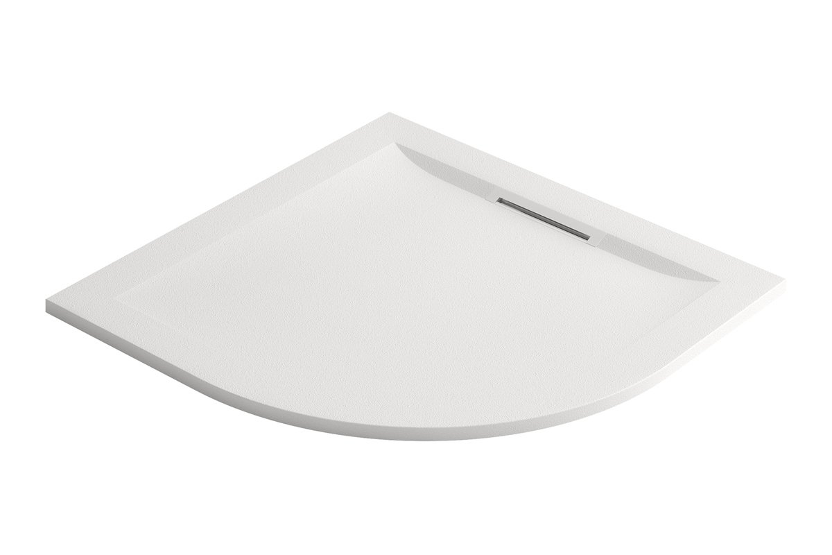 Design épuré : receveur extraplat type douche à l'italienne et sans ressaut intérieur mais avec une pente suffisante pour évacuer l'eau.