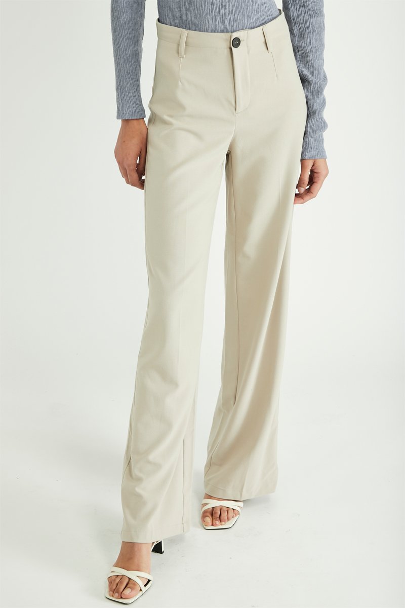Pantalon wide legs taille haute - Beige