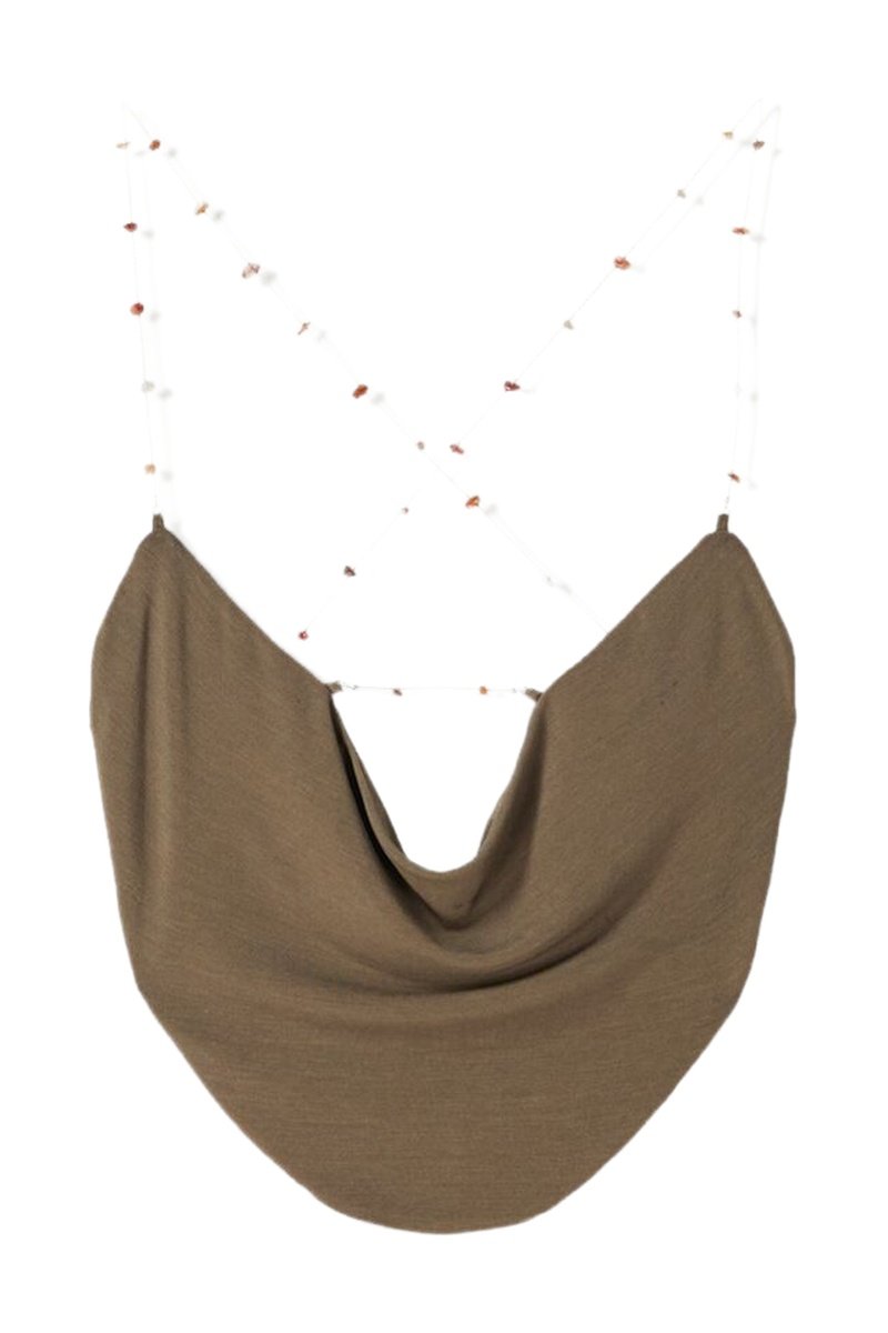 Fines bretelles croisées avec perles décoratives au dos.