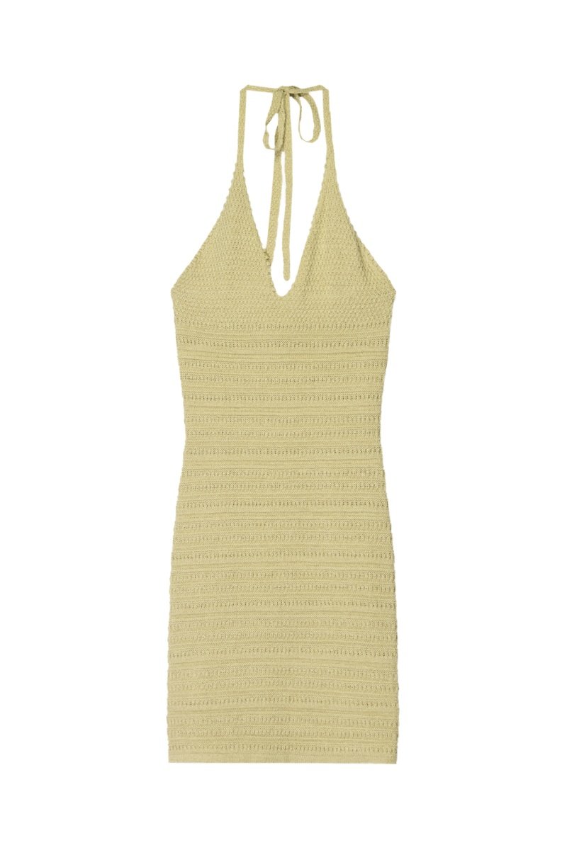 Robe droite en maille ajourée.