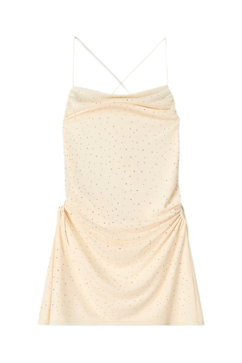 Robe drapée à strass.