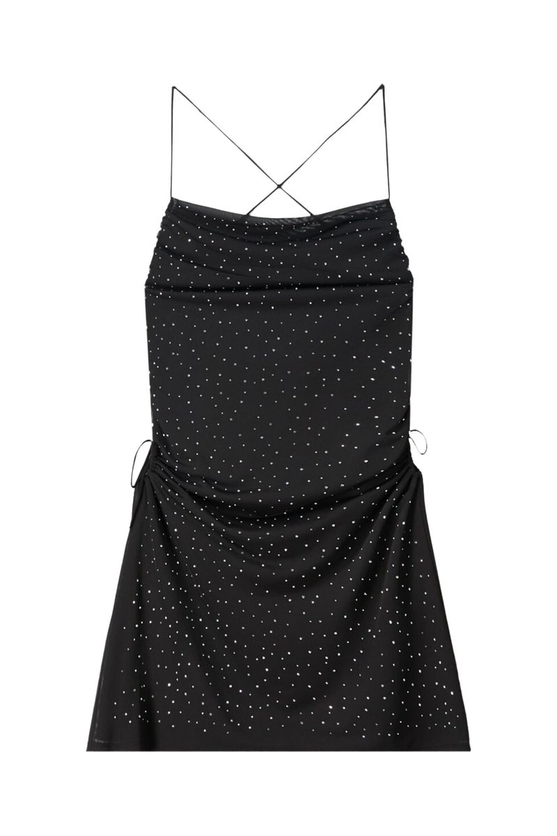 Robe drapée à strass.