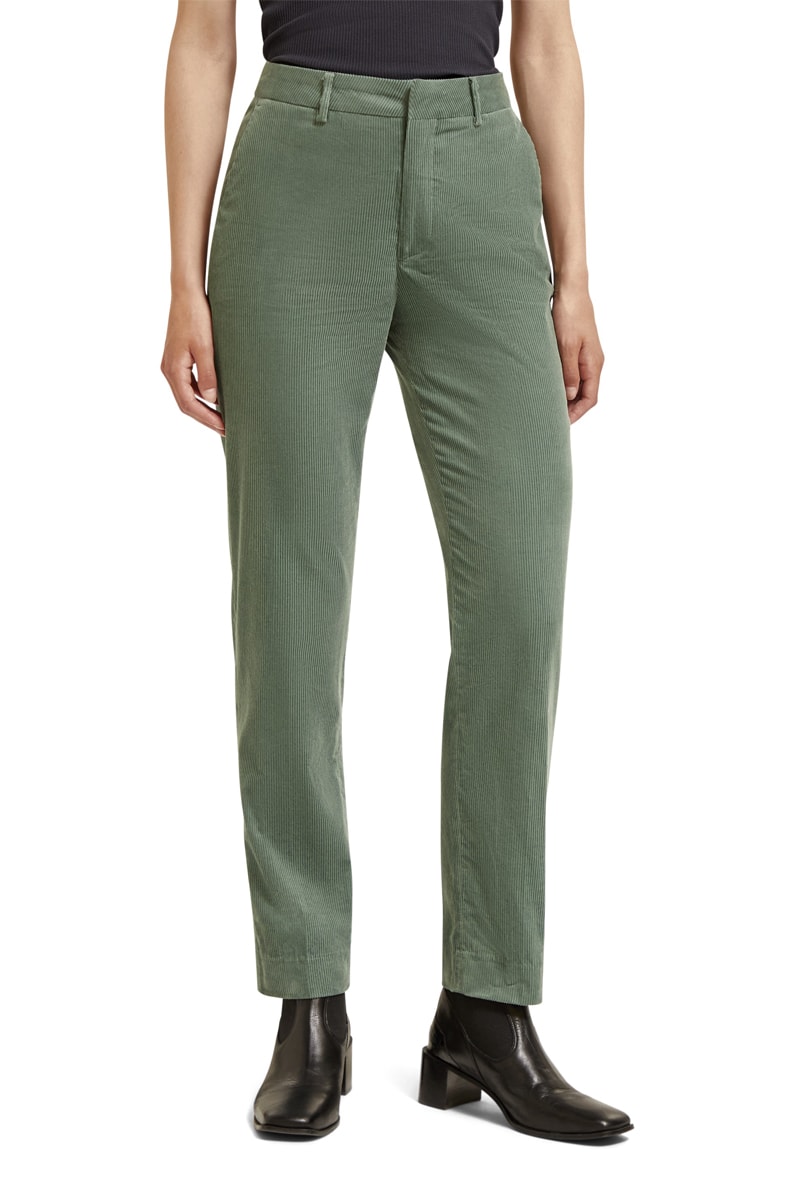 Pantalon slim en velours taille haute - Vert foncé