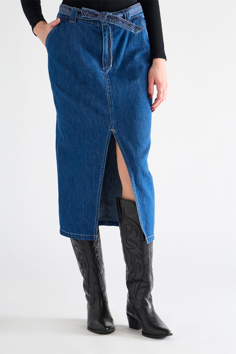 Jupe droite longue taille haute - Bleu