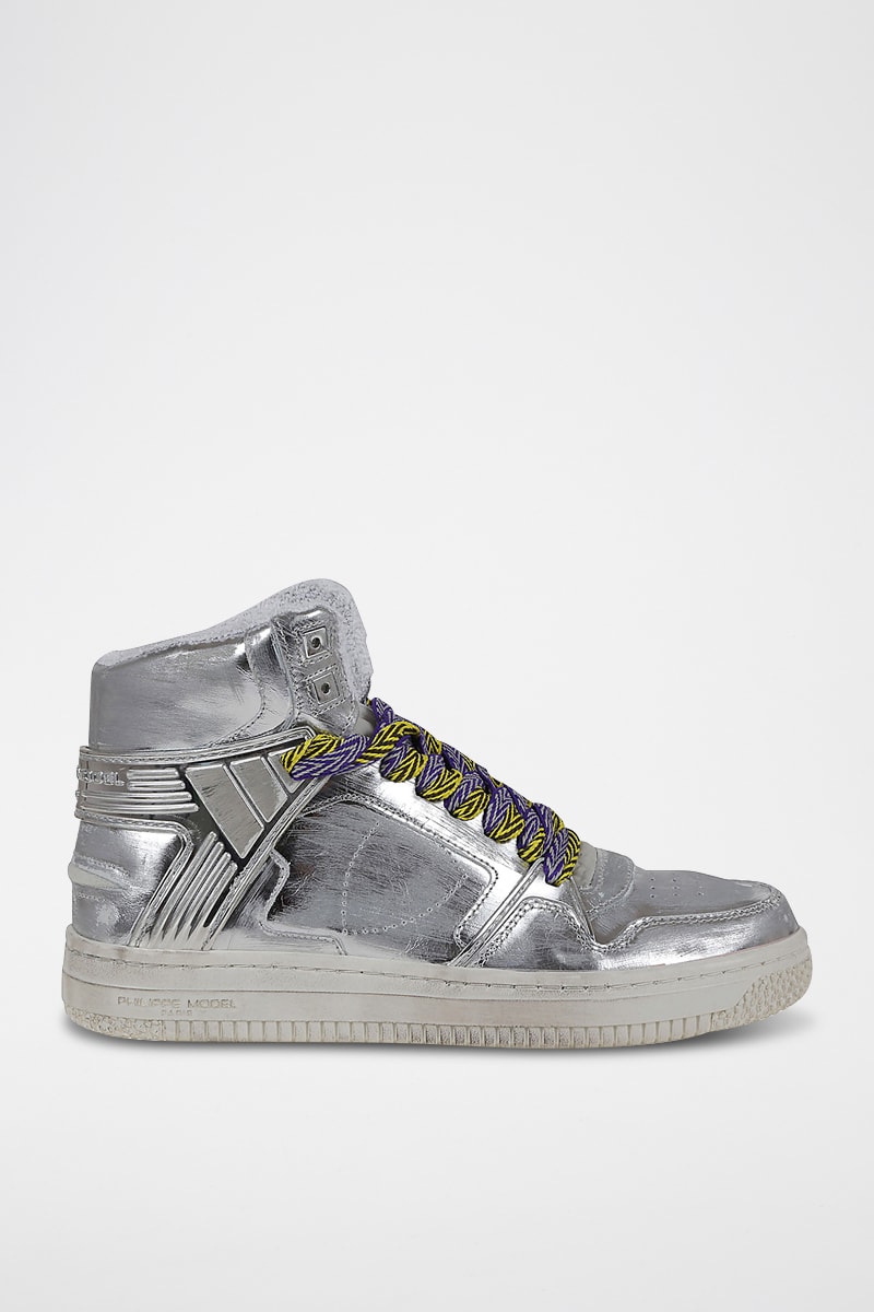 Baskets montantes en cuir - Argenté