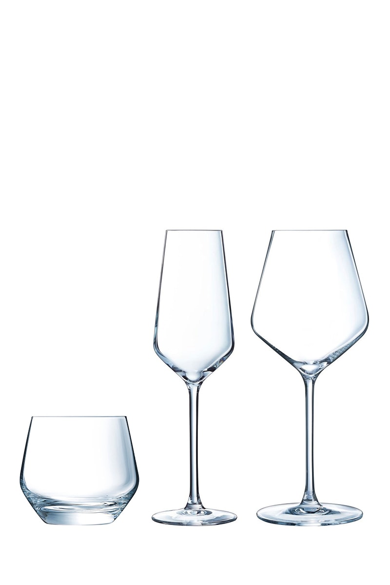 4 verres à pied Ultime - 38 cl, 4 flûtes en cristallin Symétrie - 21 cl et 4 verres à eau Ultime - 35 cl
