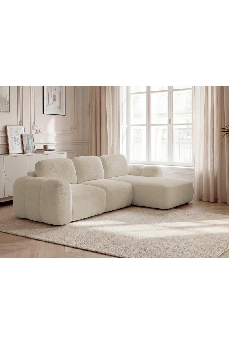 Canapé d'angle droit convertible Montaigne - Beige - 4 places - En tissu bouclette