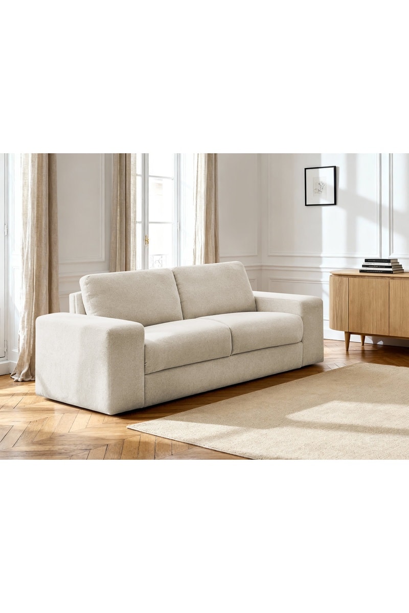 Canapé convertible Ibiza - Beige - 3 places - En tissu texturé doux