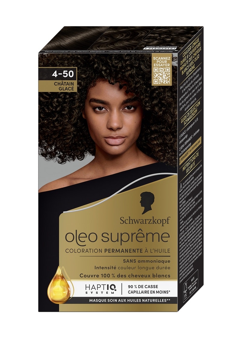 Enrichie d'un masque soin aux huiles nourrissantes, la coloration Oleo Suprême apporte une nutrition intense, redonne de la force aux cheveux et les rend visiblement plus beaux.