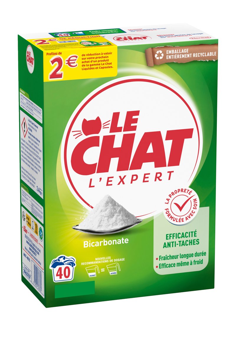 Le Chat Poudre L’Expert Bicarbonate vous offre un linge frais et impeccable.