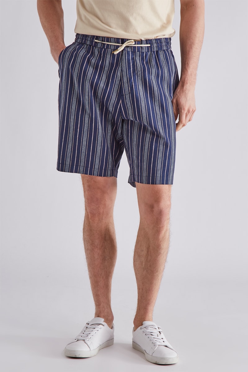 Short en lin - Bleu marine et gris foncé