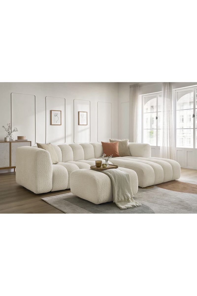 Canapé d’angle droit et pouf Talia - Beige - 4 places - En tissu bouclette