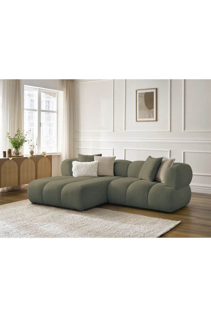 Canapé d'angle gauche Pamira - Vert - 4 places - En tissu bouclette
