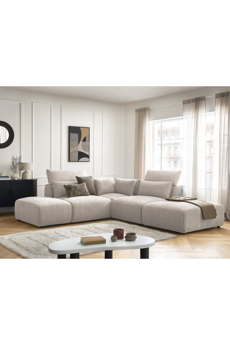 Canapé d'angle réversible et pouf Jana - Beige - 5 places - En tissu texturé